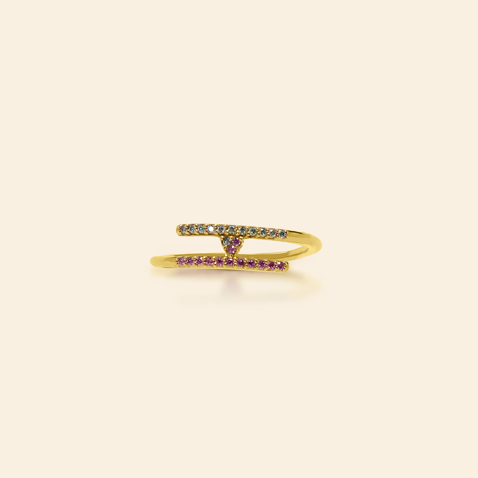 O Anel Dualis Light simboliza a união dos contrastes com um design leve e sofisticado. Em ouro amarelo 18k, o aro único se divide delicadamente em duas linhas que recebem brilhantes neon e brilhantes rosas, criando um percurso de cor e brilho em perfeita harmonia. É uma joia que traduz equilíbrio, dualidade e a energia da luz em movimento — ideal para quem busca presença sutil, com personalizada singular.