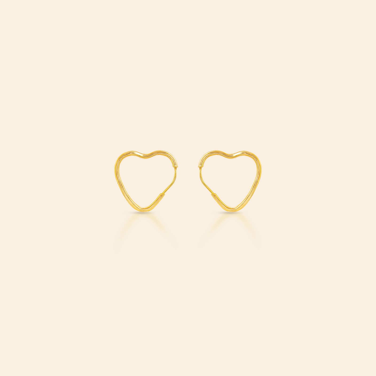 O Brinco Amor Essenza com formato de coração minimalista em ouro 18k, elegante e discreto. Uma joia para uso diário ou para presentear com significado; amor na forma mais essencial.